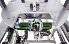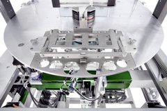 El ajuste de bloques de contactos a diferentes tipos de placas de circuito. La carga del sistema de atornillado se realiza manualmente. Para minimizar el tiempo del ciclo, la carga se realiza sobre una mesa giratoria clásica y dos accesorios de piezas opuestos entre sí.