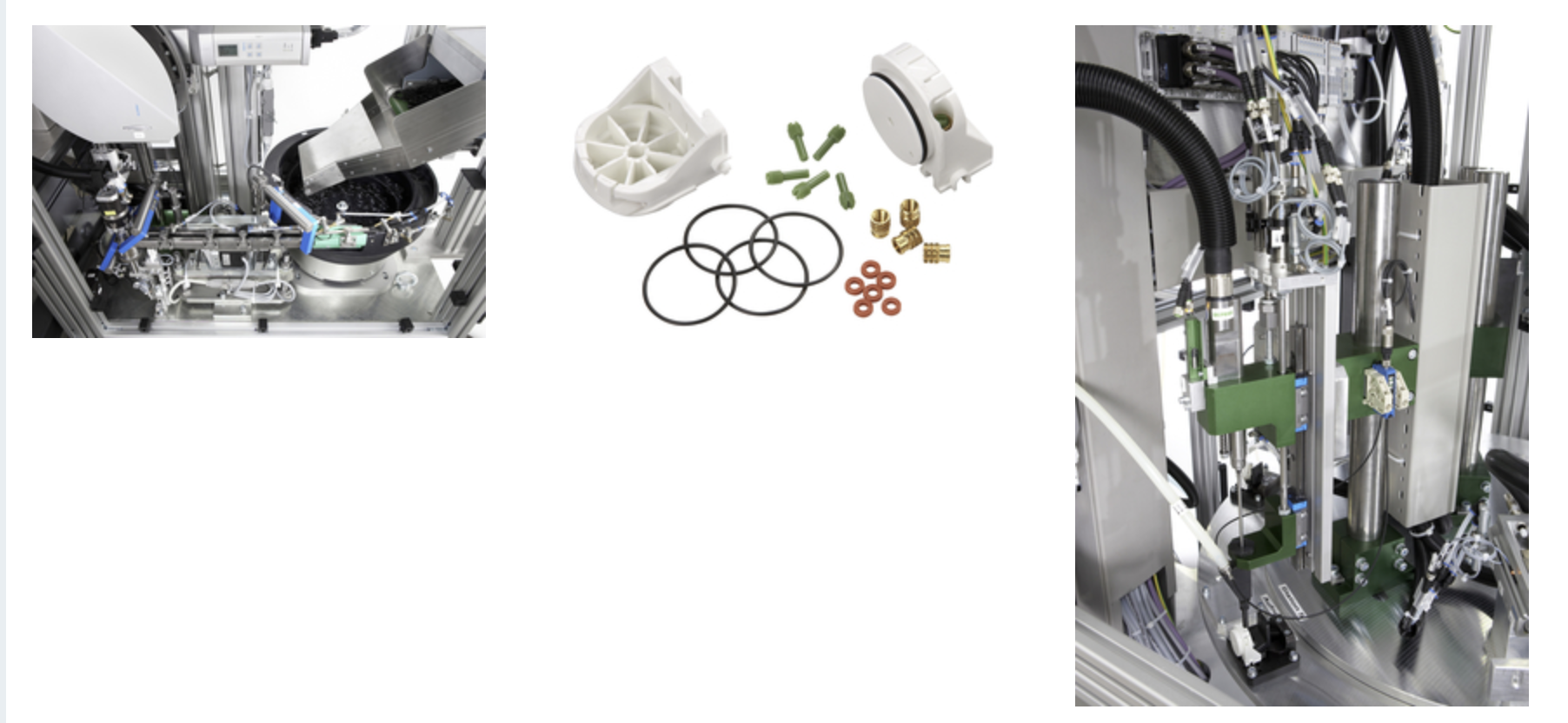 Alimentación de la junta tórica del componente, inserción de la junta tórica mediante pinza y posterior control de profundidad