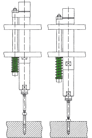 Los atornilladores multihusillo siempre requieren una compensación de carrera. Por lo tanto, todos nuestros husillos de atornillador están equipados con un perno guía lateral y un muelle para regular la «presión de carga final» de cada husillo de accionamiento. No utilizamos brocas o zócalos hechos a medida y/o cargados con resorte. Los bits y zócalos «estándar» y disponibles internacionalmente son compatibles.