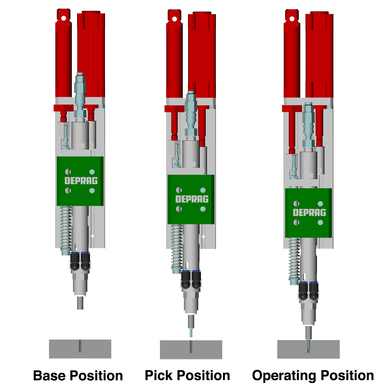 ¿Su aplicación requiere la presentación automática de un tornillo mediante un sistema de alimentación con una posición de picking? A continuación, podemos ofrecer un módulo de función de atornillador adecuado que incorpora no sólo un golpe de husillo, sino también un golpe de selección para levantar el cierre desde una posición de picking.