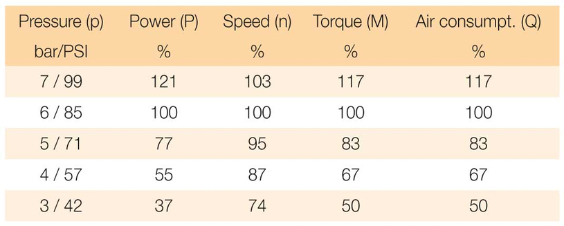 El aire de suministro debe estar seco y libre de partículas de suciedad. El polvo, la condensación o las partículas extrañas en el aire pueden dañar el motor neumático o el engranaje. La durabilidad óptima y el máximo rendimiento del motor neumático se obtiene si se lubrica el motor con aceite libre de resina y ácido. Una o dos gotas de aceite por metro cúbico de aire comprimido es todo lo que se necesita. Demasiado aceite puede provocar una pérdida de rendimiento.