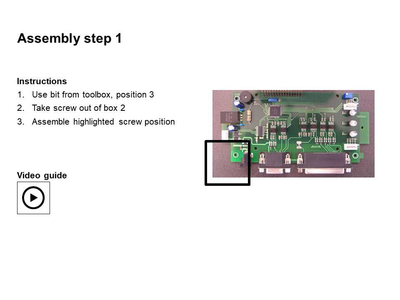 Se crea una presentación de PowerPoint con pasos de montaje individuales para cada componente. La flexibilidad de Power Point significa que hay opciones de visualización versátiles disponibles: se pueden agregar textos, imágenes, videos o archivos de audio con facilidad. Se puede configurar cualquier número de componentes o grupos de productos, ¡y todo sin conocimientos de programación!