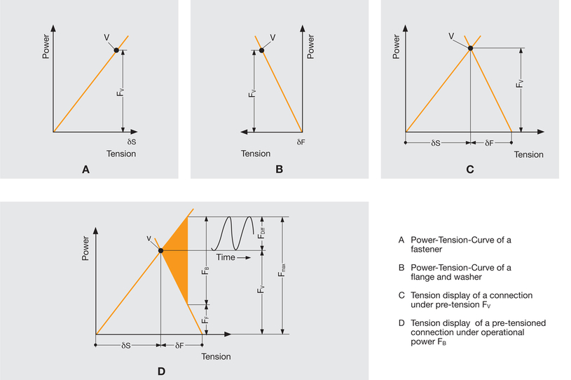 Por lo tanto, como alternativa, se deben utilizar mediciones indirectas para controlar el proceso de montaje. Generalmente es el par de apriete del conjunto de tornillo. El torque de apriete requerido se puede calcular a partir de la fuerza de precarga utilizando la fórmula VDI 2230.
