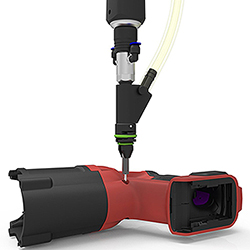 El módulo de alimentación DEPRAG (DFM) permite ensamblajes de tornillos en posiciones de tornillos de difícil acceso (por ejemplo, formas de carcasa redondas), mediante el uso de asistencia de vacío.